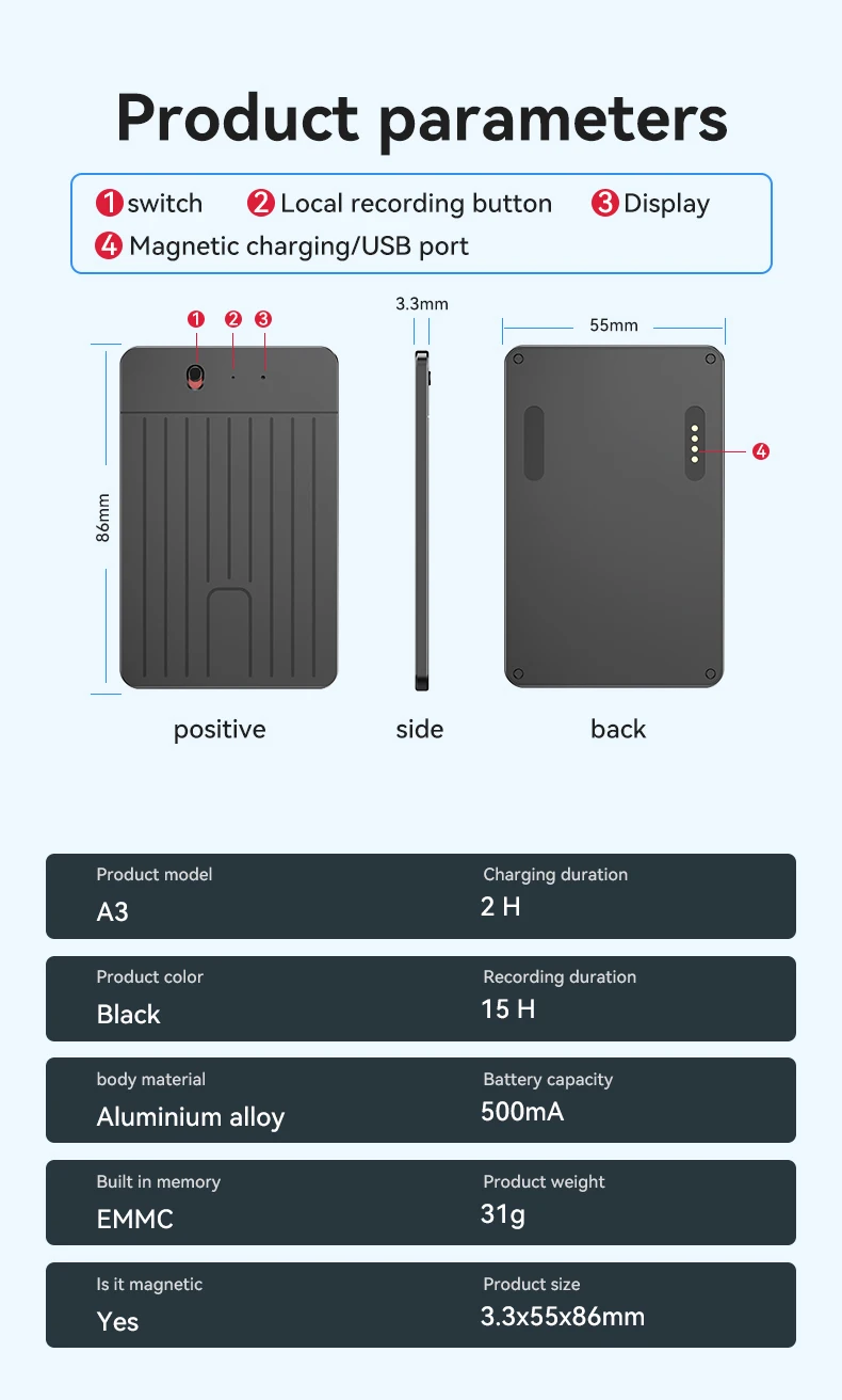 Model Number: New style Phone Calls recording with Magnetic attraction