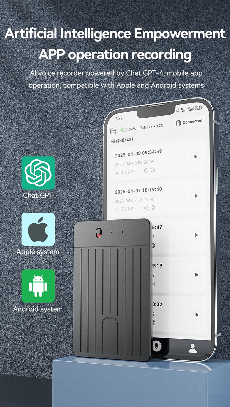 Intelligent AI ChatGPT-4 App Phone Call Voice Recorder 8-128GB Transcribe Summarize Sound Device Audio Dictaphone